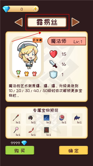 1、游戏一开始需要选择人物才能开始,推荐使用的是露易丝法师,她本身自带的宝物是走或攻击五步,随机攻击敌人百分之七十的伤害。