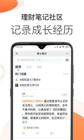 最让我觉得贴心的是它的互动社区功能,能和志同道合的小伙伴一起讨论理财经验,这种氛围特别适合刚开始学习理财的人。另外,App里有大咖讲座和优质财富书单推荐,不仅能学到专业知识,还能提升投资心态。对于像我这样对理财一知半解的人来说,简七理财真是个宝藏。