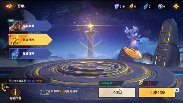 2、游戏中获得更高的实力排名,就需要不断提升自己的角色等级,扩大英雄队伍,透过英雄养成玩法提高主力英雄的战力值。英雄角色的获取方式,除了官方活动奖励和储值购买之外,玩家还主要是透过“召唤”玩法进行获取,召唤玩法分为“普通召唤”和“高阶召唤”。