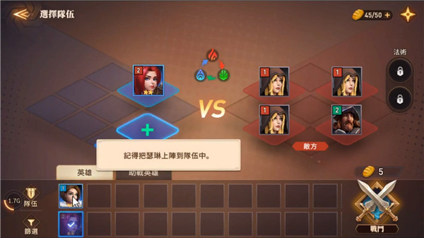 5、玩家们在设定己方战斗队伍时就需要考虑策略搭配问题,当出战英雄对敌方英雄产生克制关系时,己方英雄对敌方英雄造成的伤害会提升50%,而当己方英雄被敌方英雄的元素属性克制时,则己方打出的伤害会有50%的机率被减半