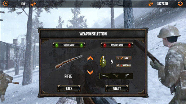 狙击手的召唤3D版手游是一款画质精美的3D射击类游戏。该游戏使用了全新的3D引擎打造,以二战时期为背景,玩家扮演狙击手前往白雪皑皑的山上冒险,狙击来袭的敌人。这里的环境十分恶劣,但你还是需要坚持完成自己的任务,击杀敌人。游戏中的天气效果和音效无一不衬托出浓烈的战场气氛,玩家进入游戏可以选择狙击枪和手枪以及武器和补给品,通过这些来狙击来袭的敌人。并且该游戏不仅有着精美写实的画面场景,而且有着多个游戏场景,不管是野外、山地任务挑战玩法都可以给玩家别样的游戏体验。另外游戏还提供丰富多元的武器装备供玩家解锁使用,再辅以真实模拟的狙击视角和逼真狙击玩法,致力于带给玩家更加震撼的游戏体验。喜欢这款游戏的玩家赶紧来这里作为第一射击手,握紧你的狙击步枪,在战役中不断向敌人基地射击,从敌人的军队中拯救世界吧。