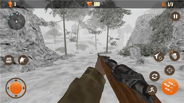 《狙击手的召唤》3D版手游是一款画质超棒的二战背景射击游戏。玩家化身狙击手,在白雪覆盖的山上执行任务,面对恶劣环境和敌人袭击,你需要用精准的枪法完成目标。游戏的画面非常真实,场景包括野外、山地等多样地形,还有各种丰富的武器装备可以解锁使用。