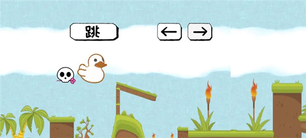 4、第三个小游戏,通过上面的跳和左右按钮让鸭子爬上最右侧的山顶即可