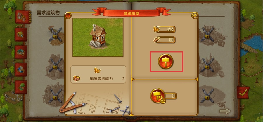 4、选择排屋的放置位置,点击图标开始建造;