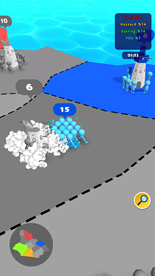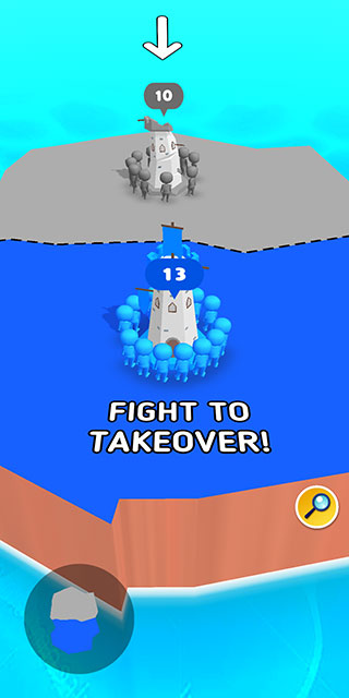 1、进入游戏之后,我们按住并滑动屏幕即可控制小人来攻占敌方土地。