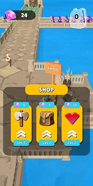4、钻石可以在商店中用来升级角色的攻击、背包上限和生命值上限。