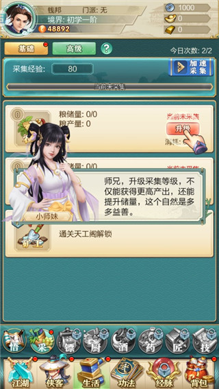 3、通过升级采集等级,不仅能够获得更高产出,还可以提升储量;