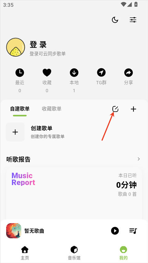 1、在我的界面内点击自建歌单右边的编辑功能;