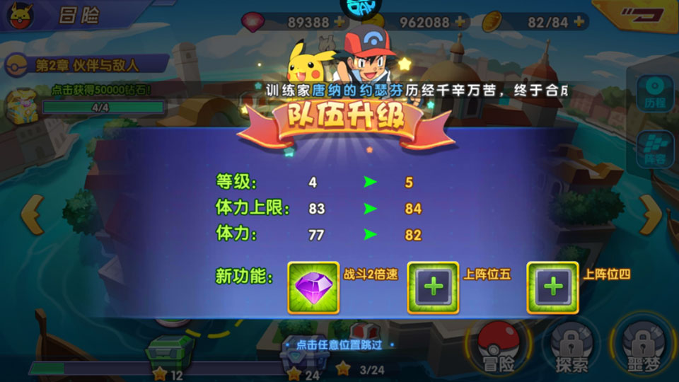 2、队伍升级,提升体力