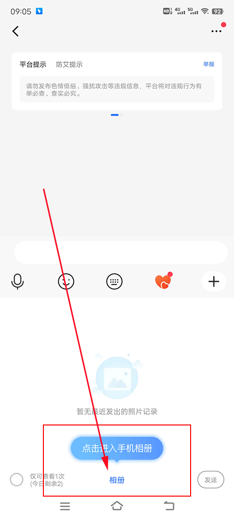 1、在聊天信息栏中点击发送图片