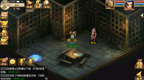 随着强制PK系统一起上线的还有捕快系统和监狱地图,强P次数太多的玩家可是会被捕快抓进监狱改造的哦。当玩家进入红名状态时,受到的死亡惩罚将无法通过天神护佑来抵消,同时进入安全区域后将被捕快抓捕入狱,进入监狱后,玩家自身无法脱身,需要其他玩家缴纳一定的金钱或者帮助狱卒来保释玩家。