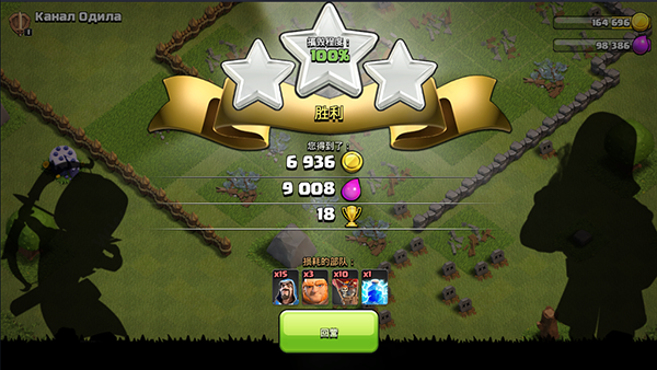 (2)玩家搜索到自己喜欢的对手后,需要在限定的3分钟内,将对手村庄内的主要建筑摧毁掉,当摧毁度达到50%时,即可获得胜利。胜利的玩家从对手的村庄里,掠夺到一些金币、圣水、暗黑重油等奖励。同时,玩家可获得相应的奖杯,奖杯越高胜利获得的奖励越多。如果玩家未能在规定时间内,达到50%摧毁度,则进攻失败,同时会扣除一些奖杯。玩家在联机模式下,将会耗损一些兵种或药水。