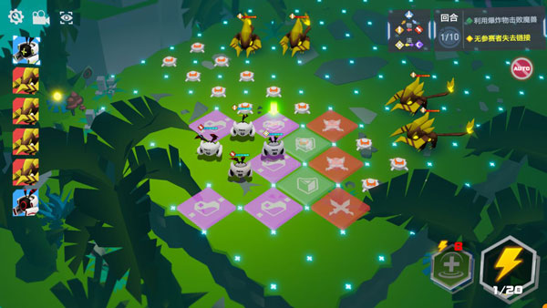 移动至防御地砖后,下回合开始自身双防得到提升,同时全队获得2点元力。触发后1回合内不再产生防御地砖。