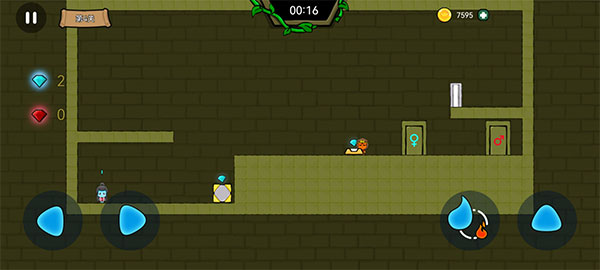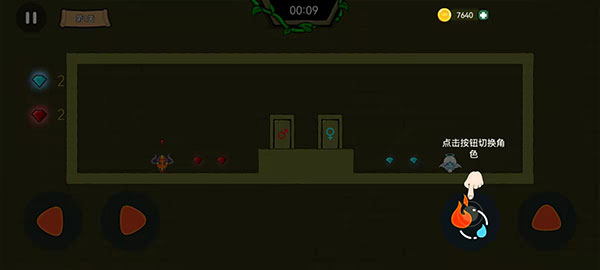 2、该游戏的操作方式是采用了房间键以及技能按钮,玩家们可以随时切换冰与火角色进行冒险。