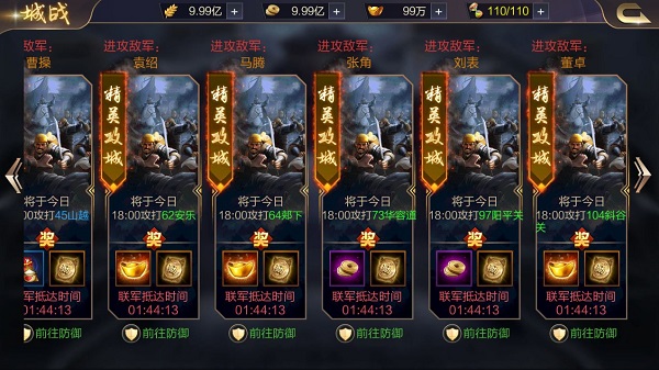 每天NPC携带元宝等资源来攻城3次,击杀攻城队伍就能得到对应奖励,杀得多拿的多。