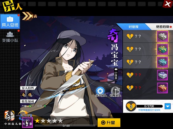 而未送达的心意可以提升异人好感度,随着好感度等级的提升不仅可以增加更强力的属性,还能解锁相应的绝密档案领取摩钻奖励,当好感度达到5级之后还能在主城召唤异人