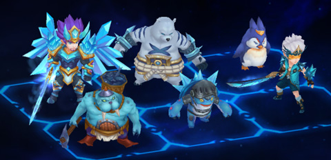 ◆水系冰冻流:主角(水龙)、硬甲龟(4星群盾必上)、海牛(反击眩晕)、冰晶领主(必备)、企鹅、雪熊(或小鱼人)