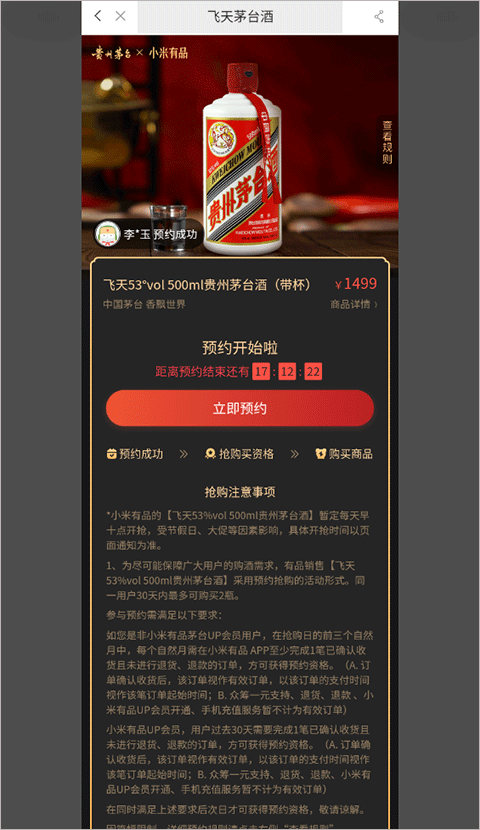如您是非小米有品茅台UP会员用户,在抢购日的前三个自然