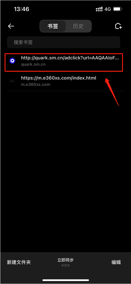 3、而查找书签的方法也很简单,从功能列表里选择“书签历史”选项,就可以成功的找到自己收藏过的书签。