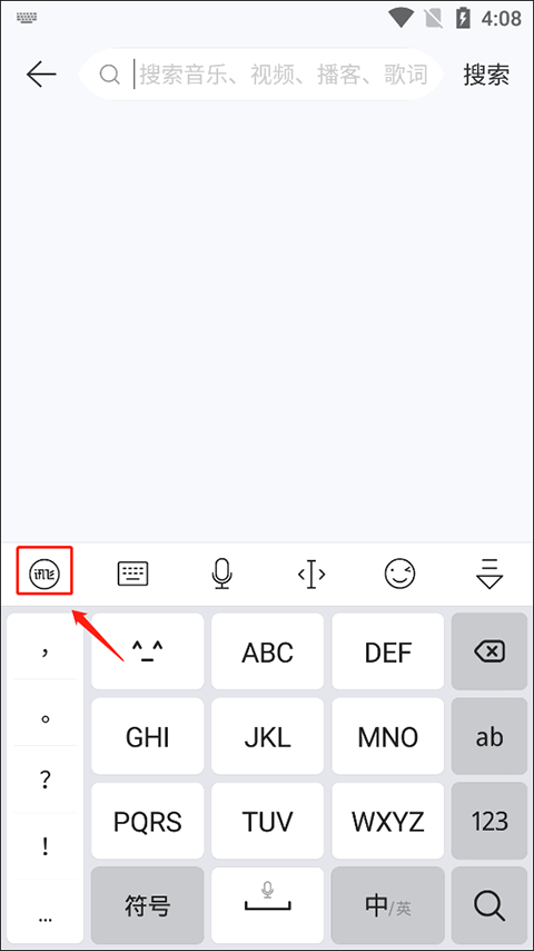 1、点击打开一个界面,点击打开键盘,点击上面的笑脸图标;