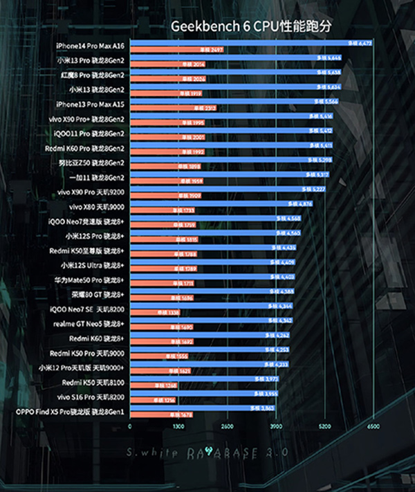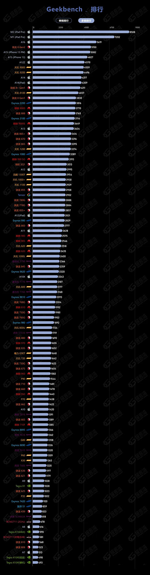 2、处理器评分:查看市面上主流手机处理器的性能得分。