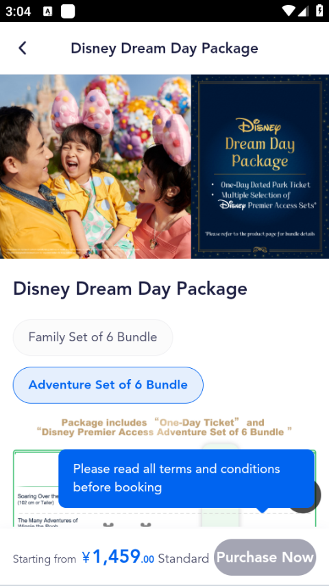 3、在购买界面提示说Please read all terms and conditionsbefore booking,也就是预订前请阅读所有条款及细则的意思。,注意右下角如果显示Sold Out,就是这个票已经卖完了。