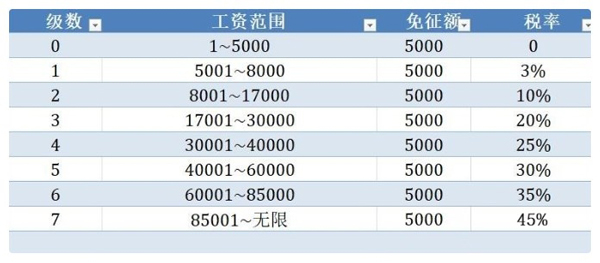 【1】工资范围在1-5000之间的,包括5000,适用个人所得税税率为0%