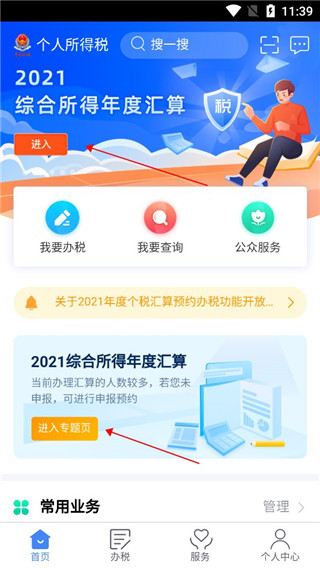 1、下载安装好退税app,之后点击2022综合年度汇算专题;