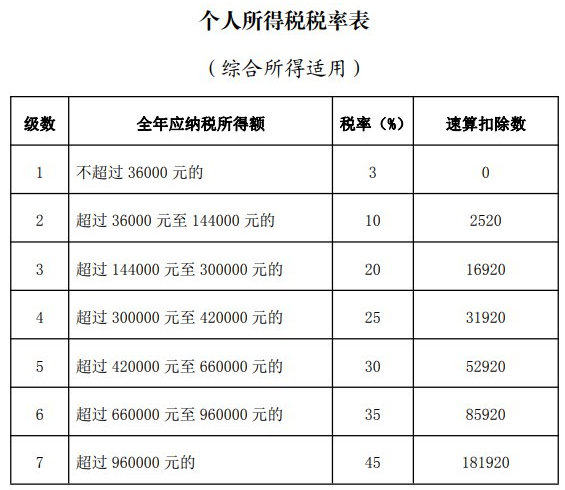 新个税速算扣除数: