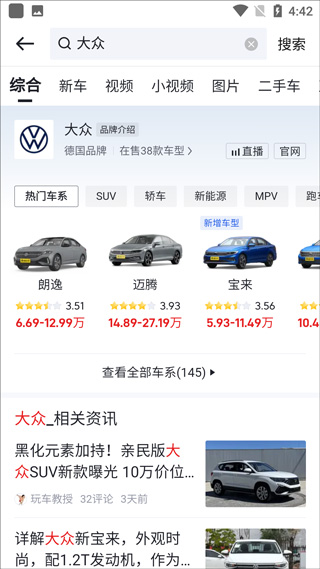 【有趣】丰富的“直播、小视频”内容体验;创新的“3D看车、拍照识车”等丰富有趣的内容和功能,让你告别枯燥,开心选车。