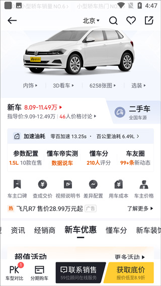 4、可以查看参数配置,实测、车主口碑、成交价、差异配置等等数据