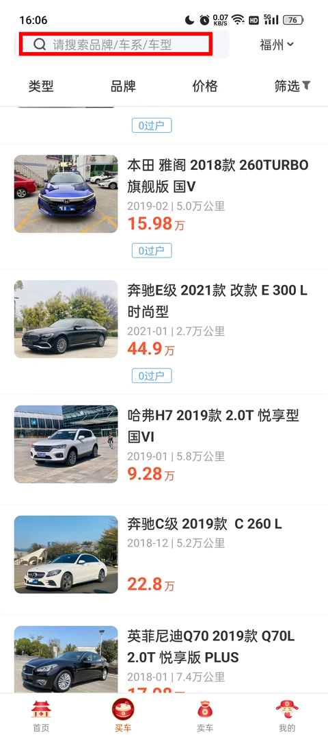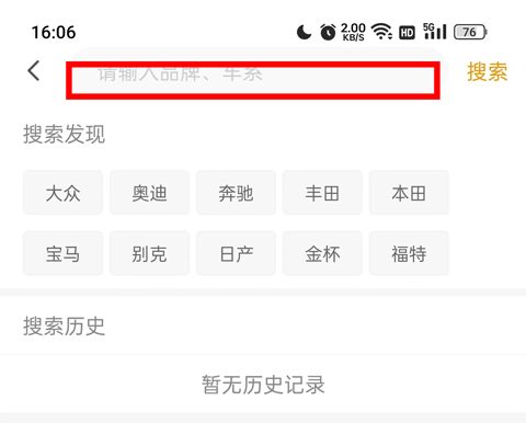 3、进入到这个页面之后,你可以点击上方的搜索栏,然后输入自己想买车辆的名字;