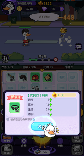 5、武装好自己的鸭鸭后,可以去冒险挑战其它的动物,挑战成功可以获得大量奖励。