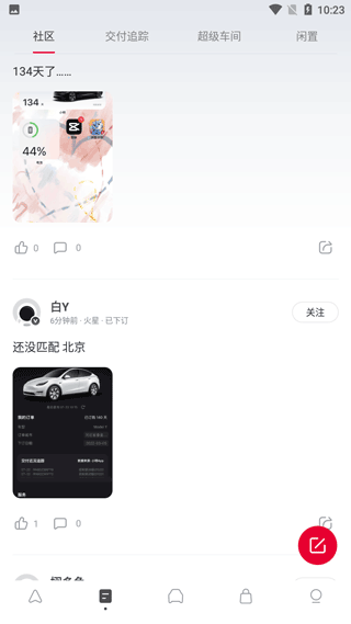 1、首先下载安装并打开软件,社区会出现各种车主发布的动态资讯;