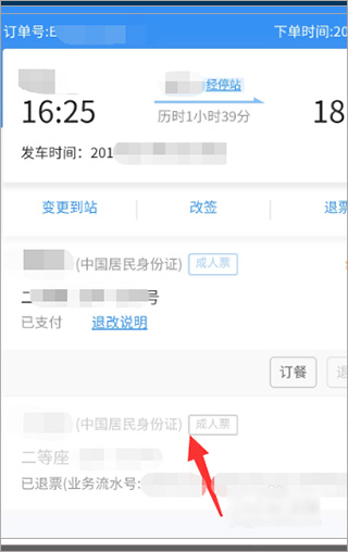 3、然后会让你选择需要退票的乘车人,因为有可能这个订单里包含有多个乘车人,这里根据实际情况选择就可以;