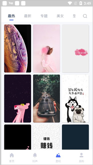 4、在“壁纸”中也是分为最新、最热、专题、美女等。
