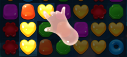 即是通过交换相邻两个糖果的位置,使3个颜色相同的糖果连成一条直线从而来对3个点进行消除(3个同色相连即可消除)。而其中如果被消除的糖果是关卡收集的目标,则同时一样会对其进行收集。