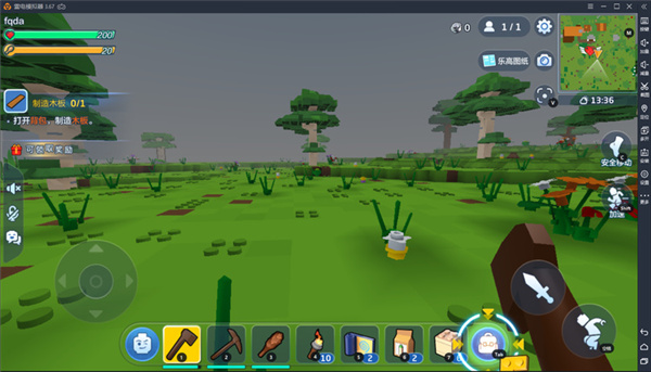 然后可以看到我们背包里面存储了多少物品,点击背包的物品跟快捷栏可以交互放置,但是现在主要是点开合成按钮制造物品。