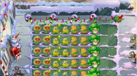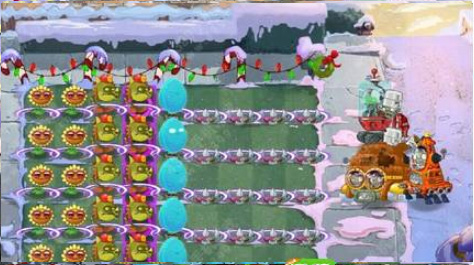 新植物与新敌人是PopCap在本作宣传中占据很大比重的一个部分,而在实际游戏中,这两个新要素确实带给了玩家完全不同与前作的感受。游戏前期能够使用的植物,除了土豆、豌豆射手和向日葵这些经典的老伙计外,大部分植物都是全新的——能攻击一条直线上最多3个目标的回旋镖射手、喜欢近身肉搏的卷心菜、不需要任何阳光就能冻僵一个僵尸的冰冻生菜、甚至还有能使用雷电攻击的闪电芦苇……这些全新植物不仅在攻击方式上和老一辈大相庭径,玩家利用它们采取的战术也有所不同。例如卷心菜这个植物的攻击频率高但攻击范围仅有一格,适合用来破坏墓碑,甚至是和坚果相互合作在前线大闹一番。