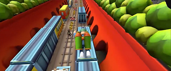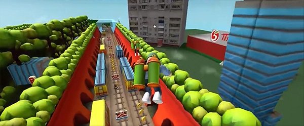 2、目标是尽可能跑的远,同时还要尽可能多的收集铁轨上的金币,游戏的视角是面向角色前进的方向
