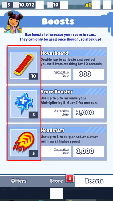 4、当然想要获得更高的分数,光靠奔跑收集金币是不够的,玩家可以通过购买滑板和双倍得分来帮助你获得更高的分数