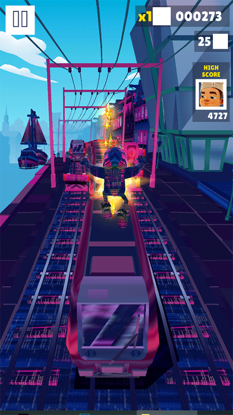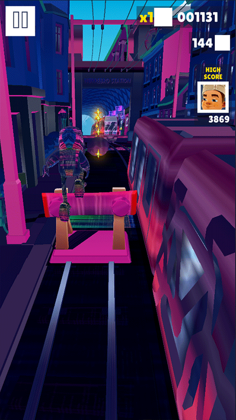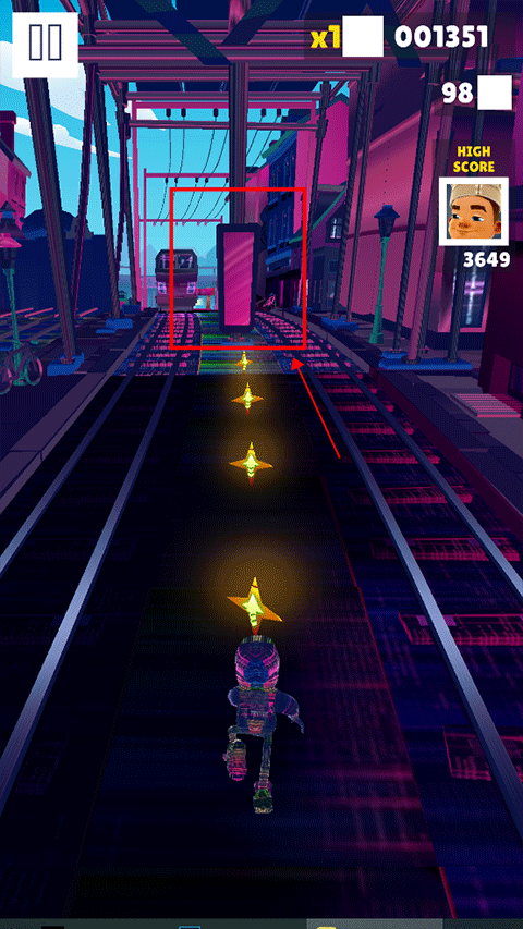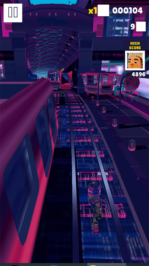 有地铁也会有隧道,中间有一根柱子,左右两边无规律会有火车奔过来,这个时候就要考验玩家的应变能力。在前期的时候过个隧道表示毫无压力,后期30W分过后经常有玩家出现手指反应不及时然后被撞死的现象。对于过隧道的技巧,眼疾手快是前提,关键是心态要放平静,这样才不会手滑。