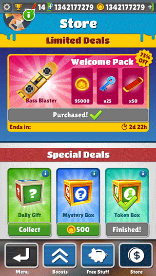 4、道具丰富:游戏中提供了各种各样的道具,如磁铁、双倍积分、飞行鞋等,让游戏更加有趣和有挑战性。