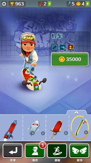 6、选择滑板时可以选择将滑板升级,滑板就会有特殊效果,比如二段跳等,这可以帮助我们更加轻松的跑酷