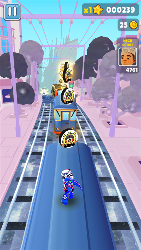 地铁跑酷的基础玩法就是躲避或者越过障碍,通过简单的滑动屏幕,上滑跳跃可以通过矮障碍,遇到列车就需要左右躲避。