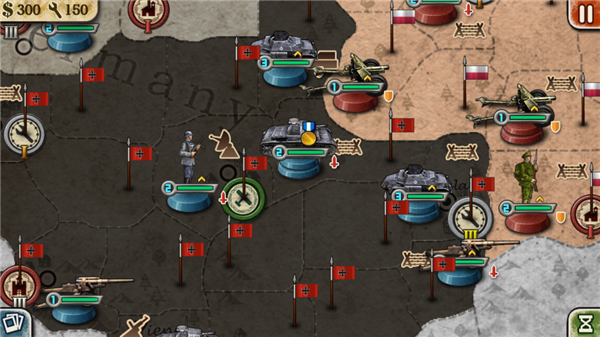 在世界征服者2战争中你的指挥官在不断的作战中积累自己的功勋最终从一个士兵晋升为元帅,并且还可以获得各种特殊的勋章来加强军队的战斗力,其中整个游戏除了单人剧本模式还提供了网络对战模式,让你能够和全世界的好友在战役中进行合作或者对抗,当然玩家在在二战剧本中也是可以参加轴心国阵营或者是同盟国阵营,当完成这些剧本后可以开启冷战剧本模式,虽然看似简单,但是考验玩家的并不是手上的操作,而是全场的控制,玩家需要考虑如何排兵才能将敌人消灭而且自己的损失最小,看似简单的操作,展现给大家的往往是不凡的智慧,你准备好了吗?快来加入我们吧。