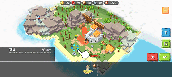 1、首先我们的任务是搜索岛屿并收集资源,我们要训练两名农民,并派遣他们去农场,然后我们要建造一个农场了并派遣农民过去,要训练一名农民,然后派遣他去森林伐木;