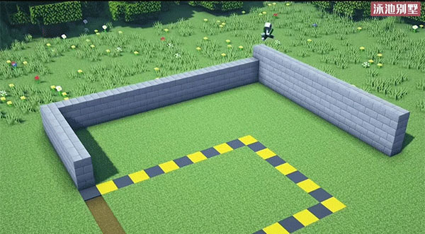5、在使用蓝色玻璃做一面墙,围墙下面在垫一层输液装饰,让结构更加美观。