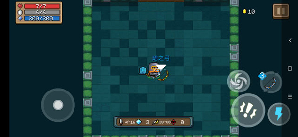 4、进入关卡后你会发现,有一把弓掉到了地上,而且武器旁边出现了一个漩涡状的按钮,没错,这就是合成武器的合成按钮。
