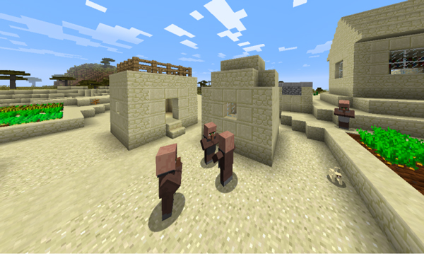 在游戏中,村民们的经济来源主要依靠史蒂夫。当史蒂夫不再出现在村子里,他们会用自己的语言,探讨着这个方脑袋的傻大个为什么消失。
